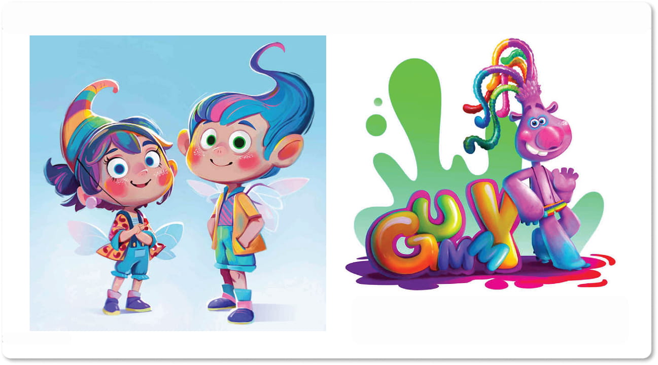 Design a collection of illustrations for a multi-part package that includes a T-shirt, a box of colored pencils, and over 100 stickers. This project is inspired by cultural elements and conceptual graphics, aimed at a children’s audience.